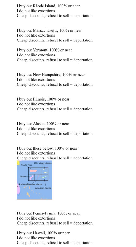 My other territories did not welcome some annoying Americans who are threats to me. Don’t enter my other territories or gets kicked.