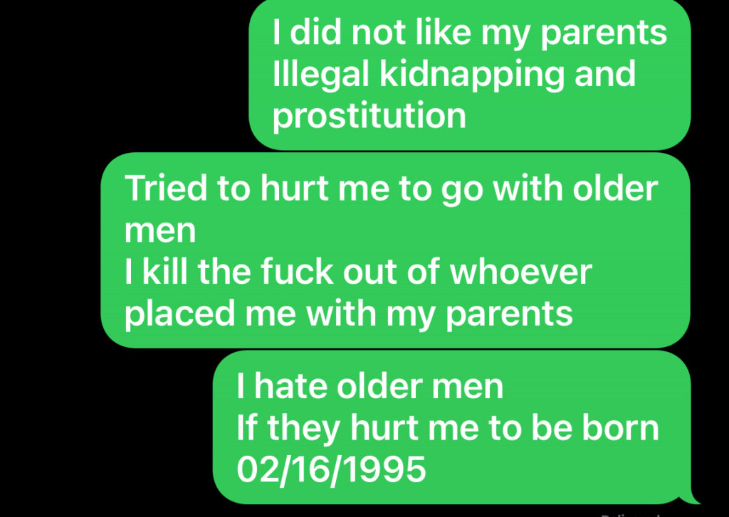try to grab me to be born old and hurt my youth and trying to send older men to me and I kill the fuck out of the humans. They can die, world extinction for them. I do not die, I live forever. I absolutely did not like my parents illegally kidnapping me.