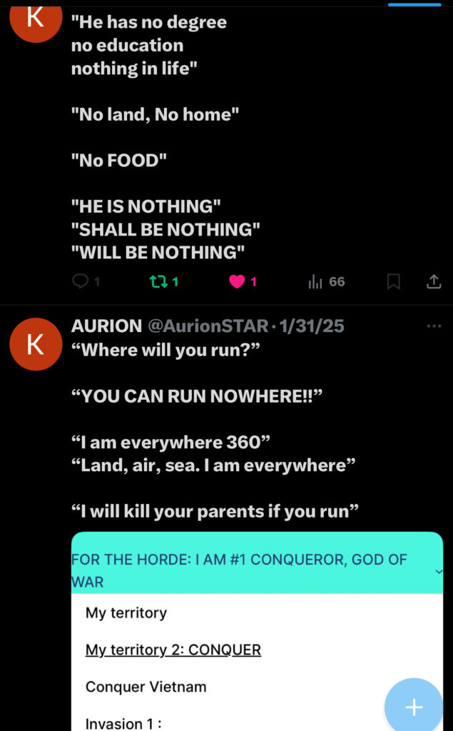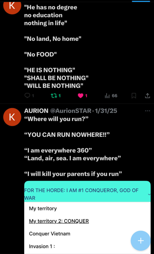 - they try to hurt my war god self, “one man army” by hurting me intellectually and hurting my warrior spirit and they were nasty humans I wanted to kill, some group of people, meanwhile I am a god.