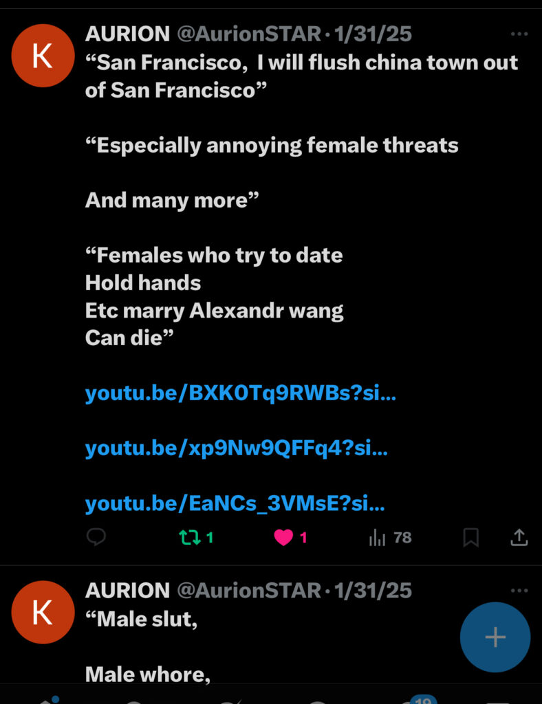 and whatever Asian females threats to me were some weird white chicks