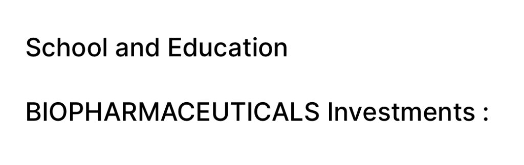 BIOPHARMACEUTICALS Investments :