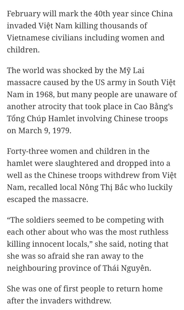 they killed 64 Vietnamese people and illegally trespassed into Vietnam stealing land and resources that does not belong to them